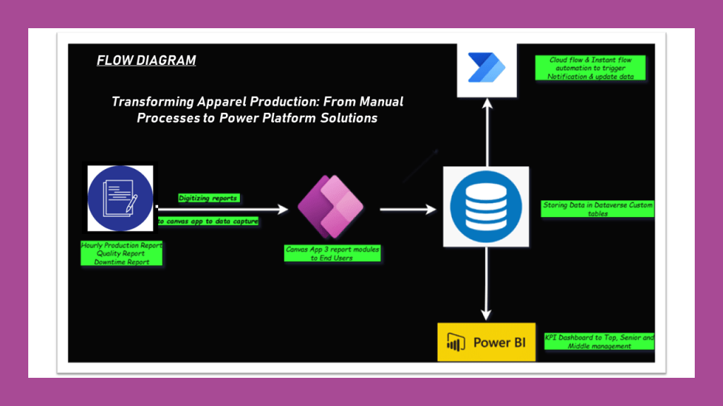 To streamline production monitoring. To enhance decision-making speed. To remove manual report handling by leveraging Power Platform components (Power Apps, Power Automate, and Power BI).